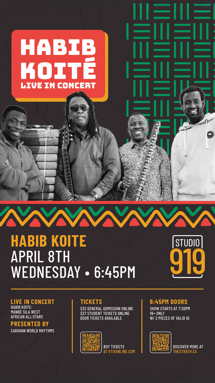 In 1988, Habib formed his group, Bamada, and attracted international attention in 1991 with the hit “Cigarette A Bana”. He released his first album Muso Ko in 1994, followed by Ma Ya in 1998, which topped the world music charts and sold over 100,000 copies. His albums Baro (2001), Afriki (2007), Brothers in Bamako (2012), Soô (2015), Kharifa (2019) have further enhanced his reputation.
