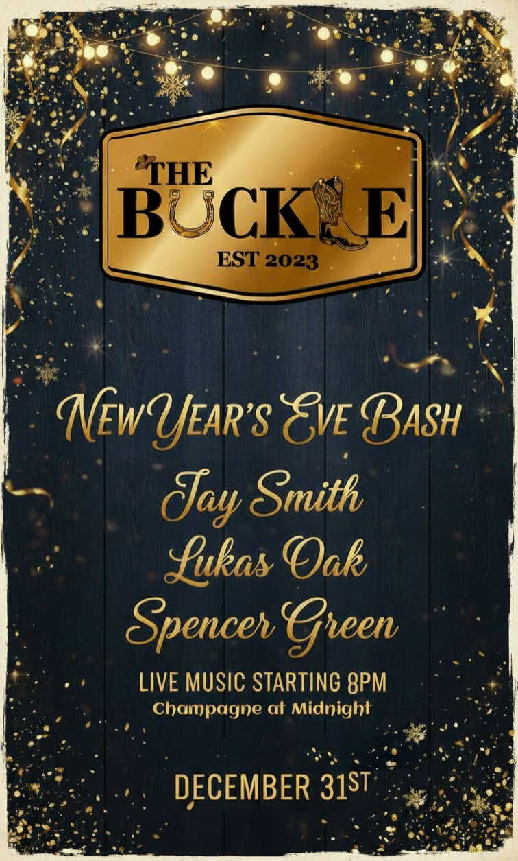 Celebrate New Year's Eve: Jay Smith, Lukas Oak, Spencer green @ The Buckle Dec 31 2025 - Feb 1st @ The Buckle