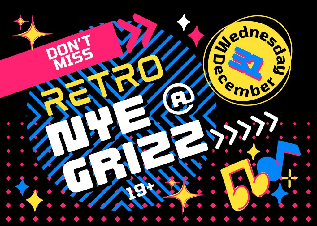 ✨ Book dinner or grab your tickets and get ready to party your way into 2026 at The Grizz!!🎊