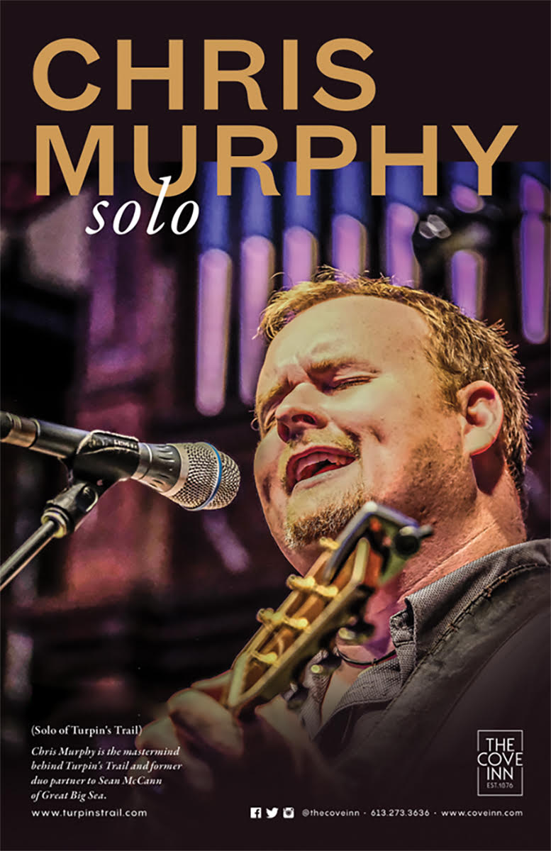 Back by popular demand, Chris Murphy of TURPIN’S TRAIL (Kingston/Perth Road Village, East Coast/Folk/Celtic) is back! Chris is from Turpin’s Trail is the Kingston-based quintet of Chris Murphy, Jon McLurg, Brian Flynn and Noah St.Amand. Having played concerts and festivals across Ontario, Turpin’s Trail has shared the stage with artists such as Murray McLauchlan, J.P. Cormier, and Leahy. Tight harmonies and acoustic instrumental accompaniment (guitar, mandolin, banjo, Irish Bouzouki, ukulele, Bodhran) bring out the beauty and energy in their original songs and their creative interpretations of songs drawn from Celtic, folk, bluegrass, and popular music genres. Amalgamating gorgeous folklore and traditional Celtic with east coast song, naturally, they are HUGE fan favourites in the Westport area. Recently, he has been the touring sidemen partner to Sean McCann of the East Coast Canadian favourites Great Big Sea and to Canadian JUNO award winning folk legend David Francey! Please tip our musicians generously.