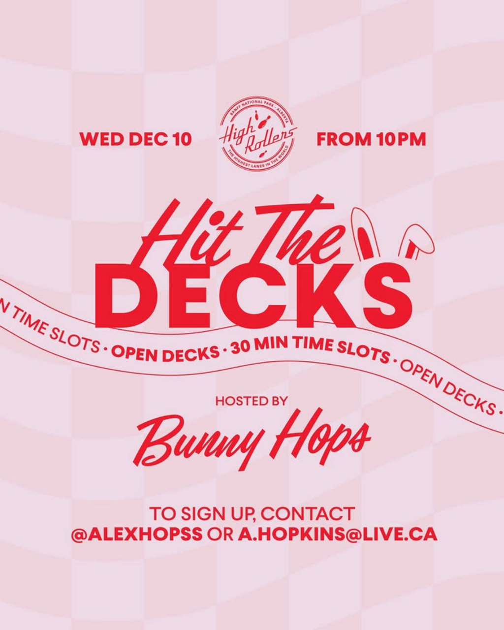 Join us with Bunny Hops for an open DJ session! This is a welcoming space for anyone eager to spin in a live environment. Reserve your own 30-minute set, or get more info, by reaching out to @alexhopss or emailing