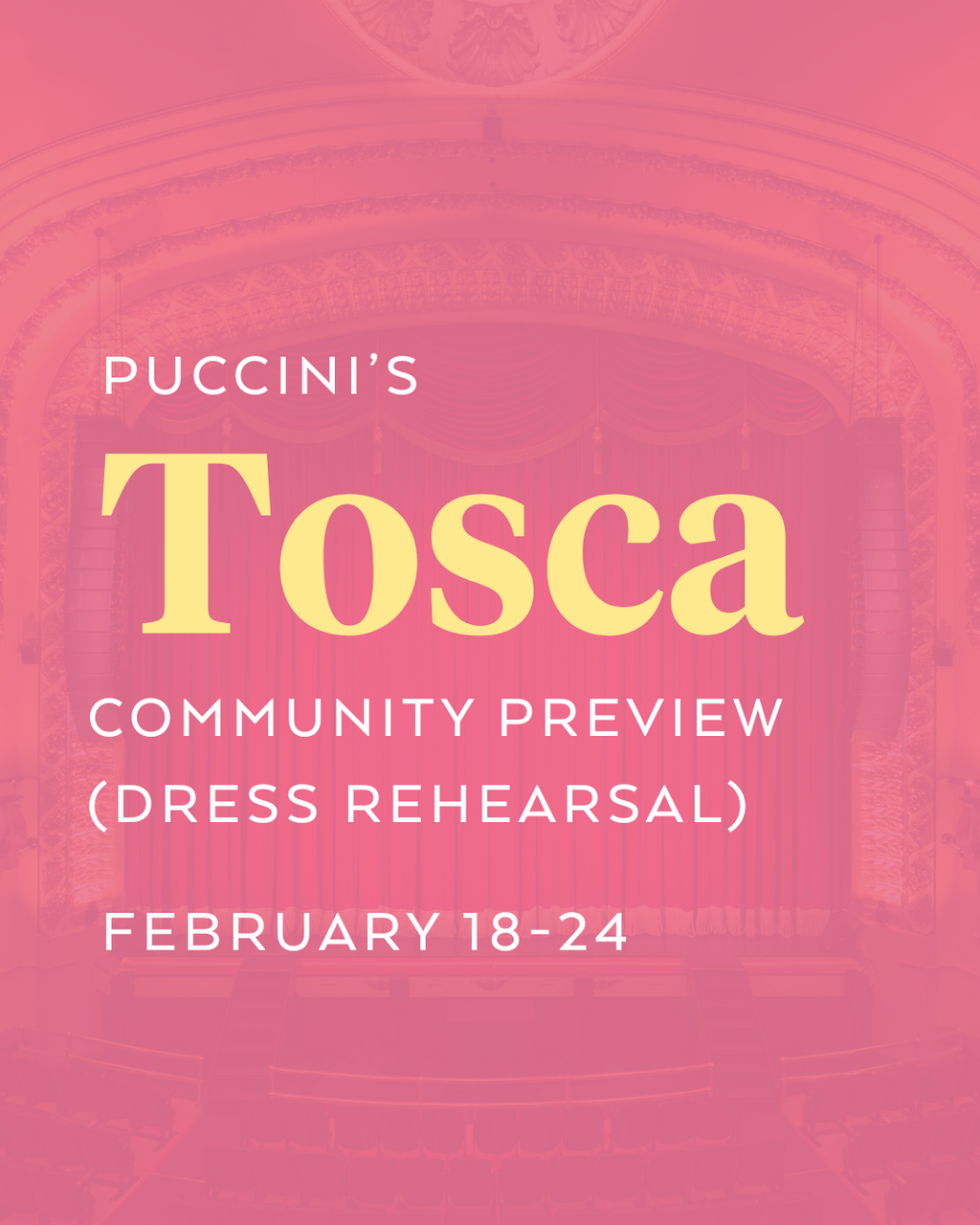 Community Preview Tickets are available to registered Ticket Access Program Partners and Educational Groups. A promo code to will be released 1 month prior to the preview via registered TAP Partners and Educational Groups. Please see our list of TAP Partners to see if you qualify, or to sign up: https://pacificopera.ca/ticket-access-program/