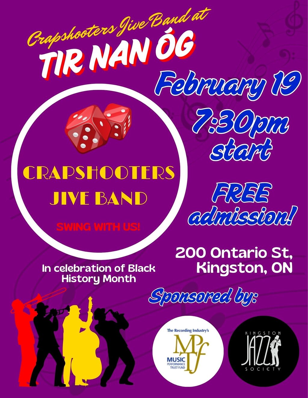 The band playing on February 19th (not the 21st) at Tir Nan Og is going to be amazing!