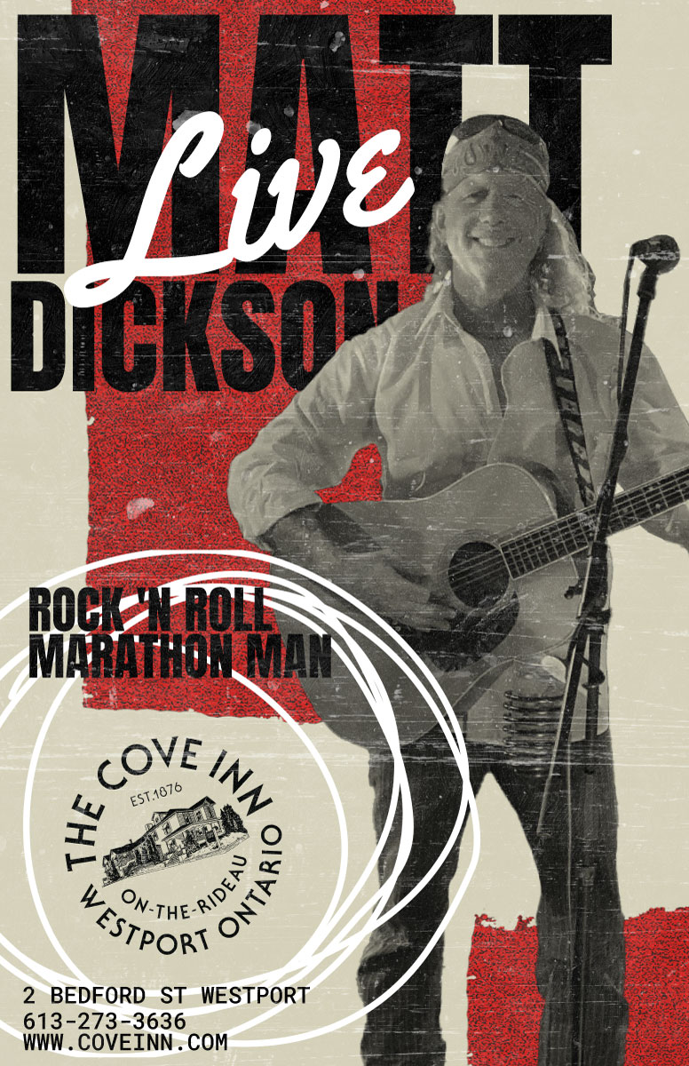 Matt Dickson, your Classic Rock Marathon Man returns to The Cove Inn on Friday, March 13th, 2026 for a live performance from 5-8pm.