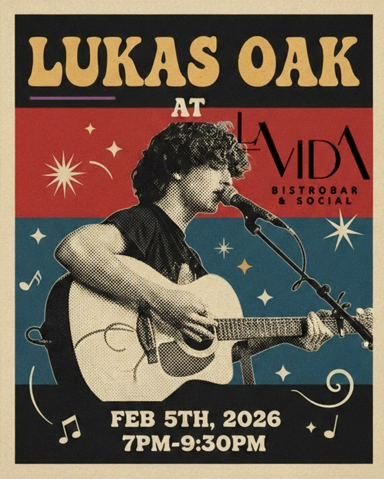 Lukas Oak @ La Vida Bistrobar and Social Feb 5 2026 - Jan 31st @ La Vida Bistrobar and Social