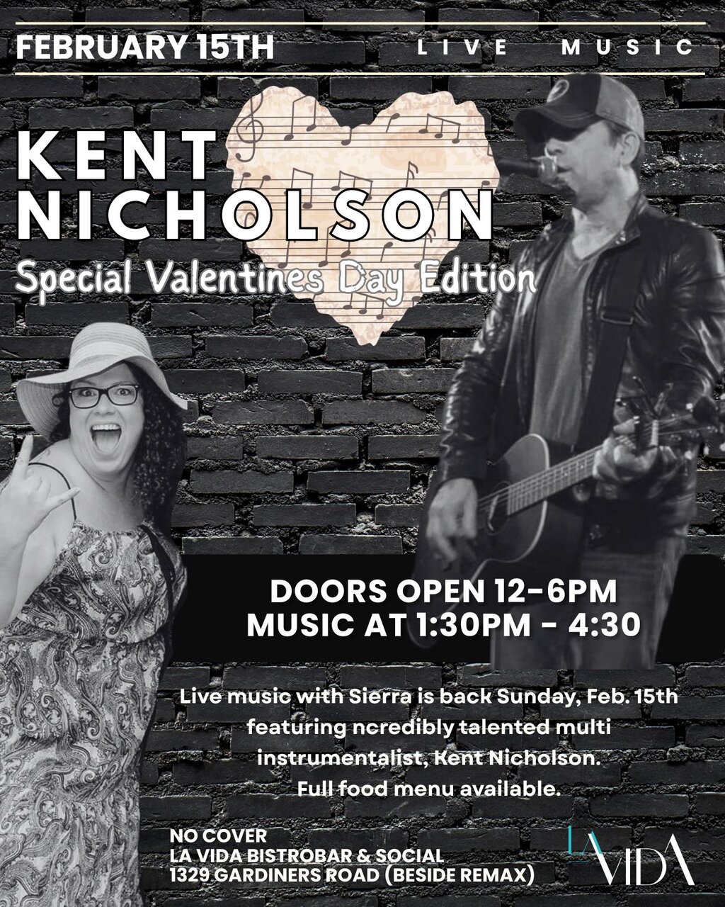 Special Edition for Valentines Day. Join Sierra as she welcomes Kingston's Kent Nicholson to La Vida. Kent is a singer/songwriter that has been performing live for 40 years including 25 years with the popular Kingston band the Rain Kings and presently as the frontman for local favourite Five Dollar Dates. His live and recording experience has given him a wide range of material to keep the night interesting.