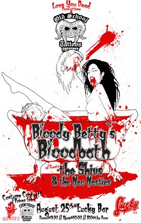 Love You Dead productions and Old SchoolTattoos bring you BLOODY BETTY's BLOODBATH BURLESQUE - a horror-themed burlesque show with special musical guests the Neo Nasties and The Shivs. CAUTION: BE PREPARED - THIS SHOW IS NOT FOR THE FAINT OF HEART!!!