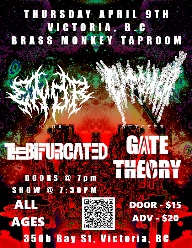 A Thurday Night of Metal w/ Endr, Gate Theory, Butcher and The Bifurcated: ENDR, Gate Theory, The Bifurcated, Butcher @ Brass Monkey Taproom Apr 9 2026 - Feb 24th @ Brass Monkey Taproom