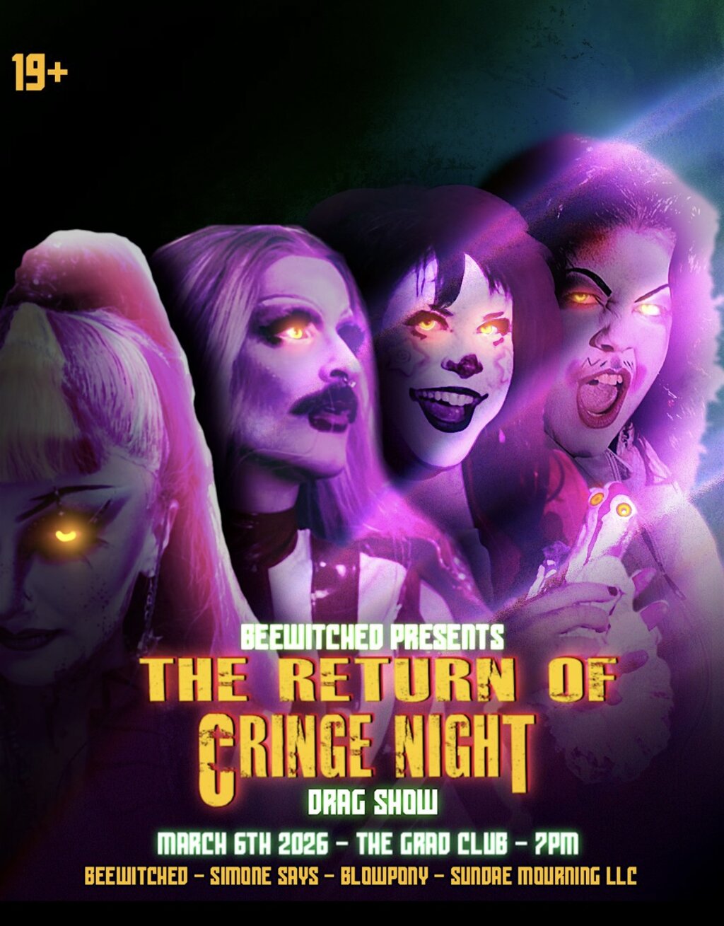 BeeWitched's Cringe Night Drag Show is BACK by popular demand! This fresh crew is ready to put on a drag show full of cringey call backs, unique numbers and permission to be fully weird. Cringe Night is a both a celebration and recollection of things that may give you psychic damage or insane nostalgia. Come make friends and stay for the ultra talented diverse cast!!