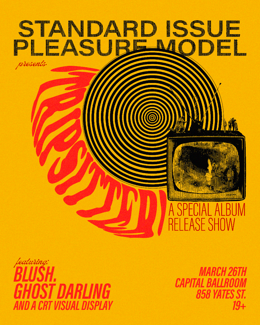 Join Standard Issue Pleasure Model as they celebrate the release of their second studio album, "Tripsitter" with their friends Blush. and Ghost Darling! Featuring a special CRT visual display.