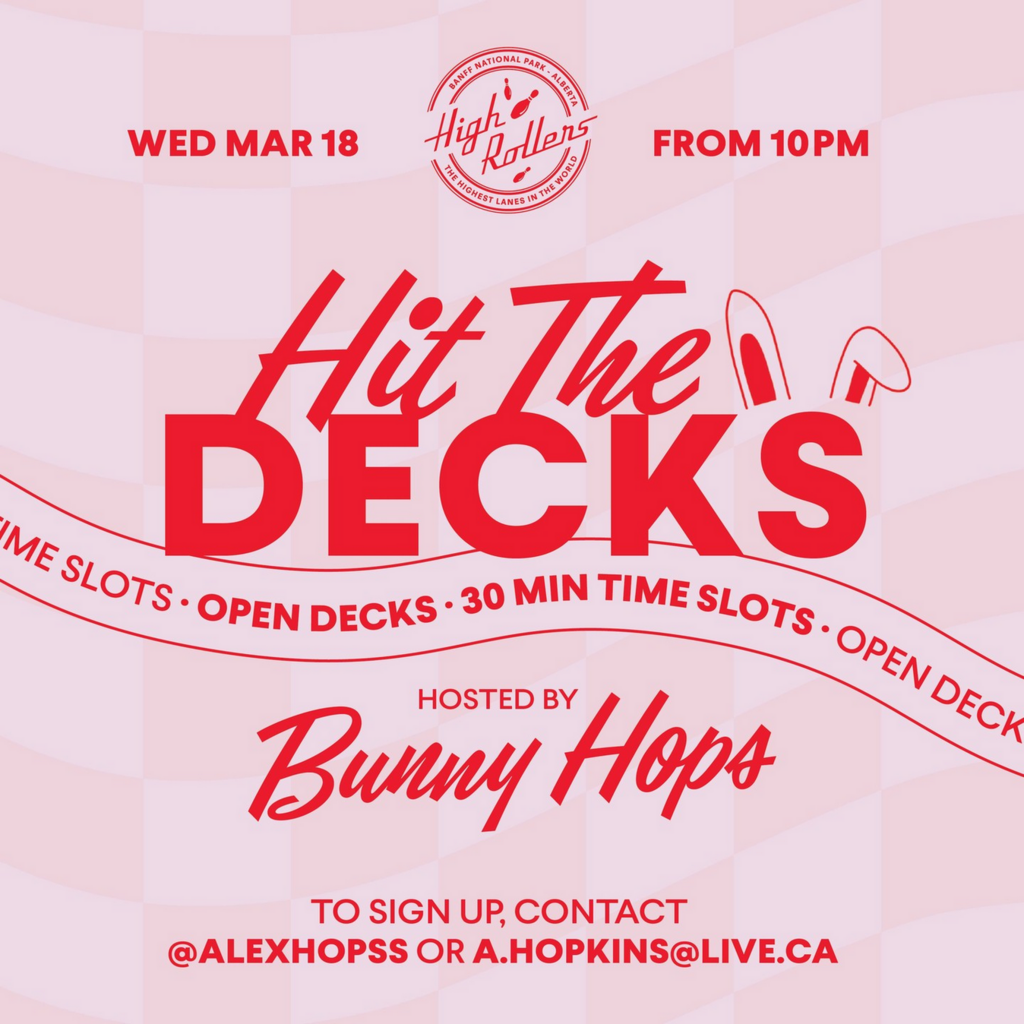 Join us with Bunnny Hops for an open DJ session! This is a welcoming space for anyone eager to spin in a live environment. Reserve your own 30-minute set, or get more info, by reaching out to @alexhopss or emailing