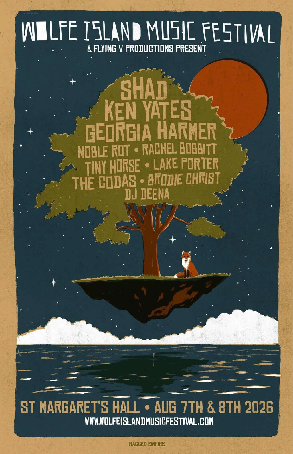 Wolfe Island Music Festival: Shad, The Noble Rot, Rachel Bobbitt, Tiny Horse, The Codas, Brodie Christ, DJ Deena @ St. Margaret's Hall Aug 8 2026 - Mar 25th @ St. Margaret's Hall