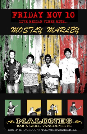Funky Bob Marley cover band: Mostly Marley @ Malones Bar & Grill Downtown Nov 10 2006 - Dec 26th @ Malones Bar & Grill Downtown