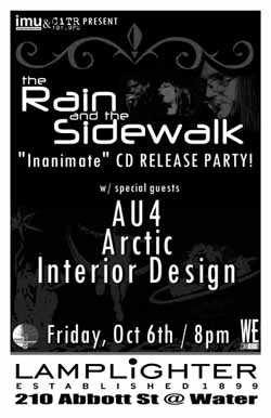 Join The Rain and the Sidewalk as they celebrate the release of their new CD "Inanimate" at The Lamplighter with special guests AU4, Arctic & Interior Design!
