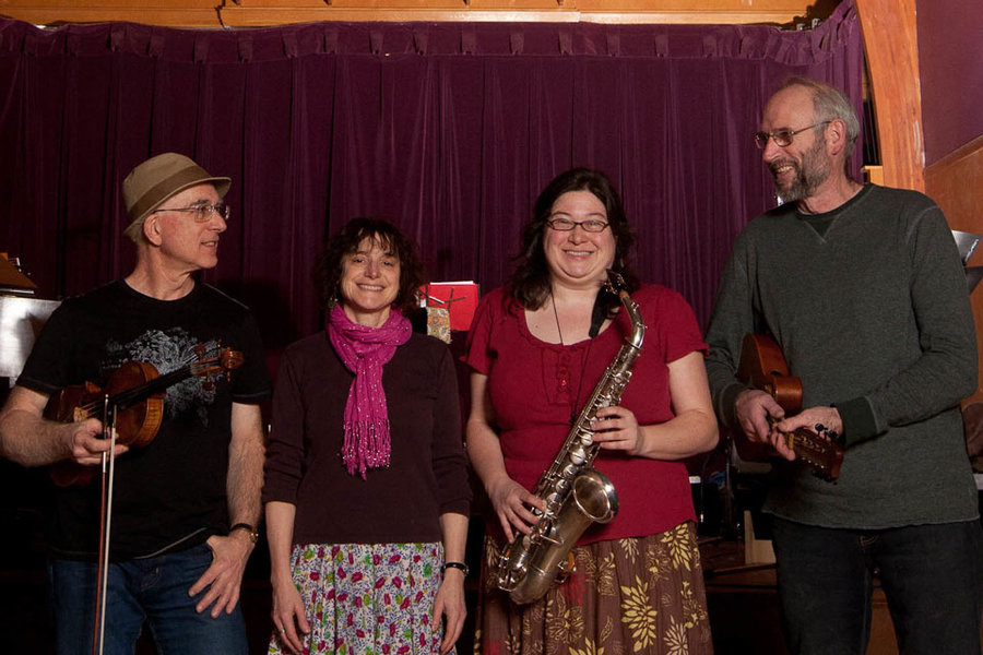The Sybs perform at dances and festivals across the Pacific Northwest including a monthly "First Saturday" contra dance series with the Vancouver Rogue Folk Club. Their high energy music includes traditional, contemporary and original fiddle tunes with styles ranging from Celtic to Quebecoise to Klezmer. The ensemble features Barry Cole (mandolin, banjo, guitar), Leith Davis (piano, double bass), Claire McCague (recorder, saxophones) and Rich Sobel (fiddle, mandolin, djembe, percussive feet).
