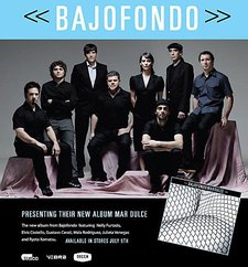 Bajofondo is comprised of Gustavo Santaolalla on guitar, percussion, and vocals; Juan Campodónico on programming, beats, samples and guitar; Luciano Supervielle on piano, keyboards and scratch; Javier Casalla on violin; Martín Ferrés on bandoneon; Gabriel Casacuberta on upright bass and electric bass; Adrián Sosa on drums; and Verónica Loza as VJ and on vocals.