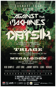 Only in the Dubstep scene a short time, 21 year old Datsik (Troy B.) has wasted no time by making his presence be known internationally, introducing his own unique style of industrial sounding futuristic beats and heavy dance floor stomping rhythms. His latest successes on the Beatports “Top Download” charts are a testament that his music is being recognized by listeners all over the world, with multiple releases hitting number 1 on Beatport and Chemical-Records for extended periods of time. It is very well possible that he has been the first dubstep artist to ever hold 5 out of the top 10 best selling tunes at once on Beatport. He has also earned the attention of some of the most notable and influential acts in the scene to date such as Bassnectar, Skream, Rusko, & DJ Craze, to name a few. With the Rottun Recordings label behind him, he has been hard at work, working on many tunes, collaborations, and remixes for some of the biggest names in the world. In a genre with increasing popularity, he continues to devote his time and energy into pioneering a distinct sound that will transform it to the next level, and set him above the rest. He has demonstrated his skills time and time again to packed audiences, on each occasion leaving them in a state of disbelief. Datsik is going to be big this year!