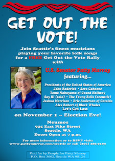 Join Seattle's finest musicians for a night of folk covers in a Free Get out the Vote Rally for Senator Patty Murray!