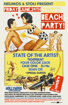 21+ :: Retro Beach Movies, Cabana Boys, Palm Trees, Glistening Bodies, Jello Shots, Tiki Torches, Beach Balls, Sand Dunes, Stoli Waterfall Bar, Tropical Photo Booth, Surfboards, SPF 15, Outdoor Games, Shark Attack, Sexy Lifeguards :: Competitions: Hula Hoop, Best Swimsuit, Best Team Outfit, Double Dutch, Limbo + More :: Prizes: Capitol Hill Block Party Tickets, Tickets to Neumos Shows, Tickets to Hawaii, Gift Certificates, Real Live Dolphin (Comes with Baby Pool)