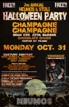 The Second Annual Stoli Neumos Halloween! DJ Sets by Tigerbeat! Live performances by Champagne Champagne and more! Scary decorations :: Candy Candy Candy :: Sexy Zombies :: Creepy Photobooth :: Costume Contest