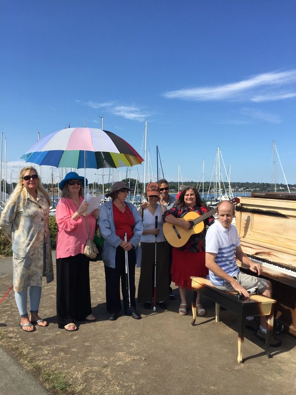 A group of vision impaired persons under the direction of Marcelina Stanton. Meeting Mondays from 10-12 at the James Bay New Horizons Centre. Available for entertainment for meetings, churches, collaborating with other singing groups, seniors homes etc.
