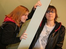 Jamie and Erin like music. One day Erin moved in with Jamie. Then one day Jamie said, "let's play some music." Then another day Erin said "let's play some music again." and Jamie said, "let's record it too." Now they're a real band.