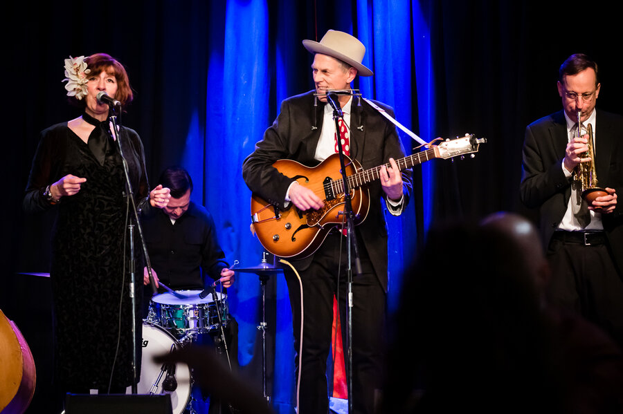 Slim Sandy's Atomic Cocktails play classic jazz and jive tunes from the 30's and 40's! The act features Slim Sandy and Willa Mae on vocals, Clark Brendon on bass, Bryn Badel on cornet, and "Soda Pop" on drums.