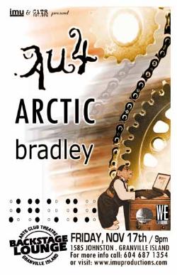 . Friday, November 17th IMU & CiTR present AU4, ARCTIC + BRADLEY @ The BACKSTAGE LOUNGE on Granville Island (1585 Johnston St.) . 9pm / $10