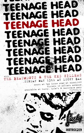 Teenage Head return with their original lineup! Plus, The Beaumonts and The Keg Killers! Advance tix at Lucky, Lyle's, and Backstage Pass. Doors at 8pm - show finishes by Midnight. www.teenagehead.ca