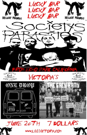 Wicked Punk/Ska triple bill!!! From Echo Park California is Hellcat Records' Society's Parasites with locals One Drop and The Grey Army! Show starts at 10pm.