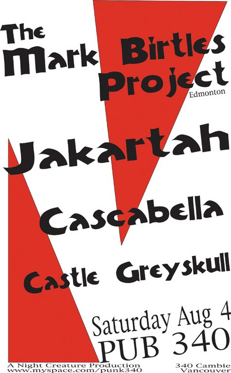 Mark Birtles Project, Cascabella, castle grey skull, jakartah @ Pub 340 Aug 4 2007 - Feb 15th @ Pub 340