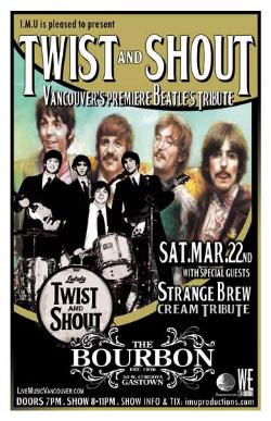 . Saturday, March 22nd I.M.U. presents TWIST AND SHOUT Premier Beatles Tribute w/ special guests STRANGE BREW Cream Tribute @ The Bourbon, 50 West Cordova . Doors 7pm . Show 8-11pm sharp / $10 Advance - Purchase advance tickets online @ http://www.imuproductions.com