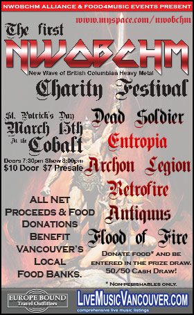 Food4Music Events has joined forces with BC's best "New Wave of British Columbian Heavy Metal" (Melodic, classic, power and thrash metal) bands have united to play a charity show of epic proportions.