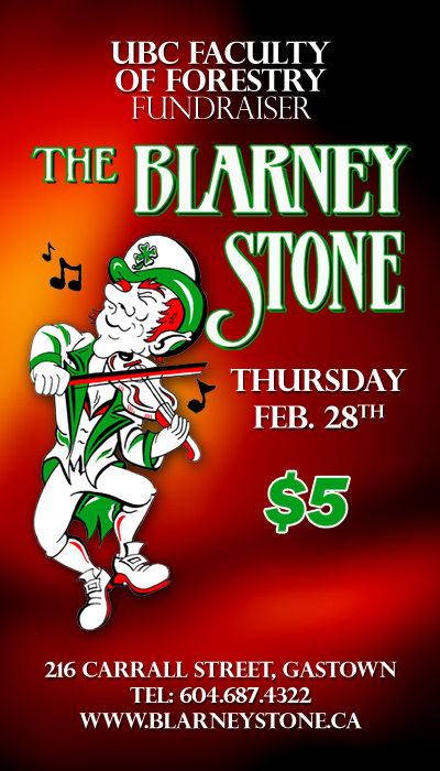 On February 28th The Blarney Stone is hosting the UBC Faculty of Forestry fundraiser. Come down and support UBC and party with us as we raise money for a good cause.