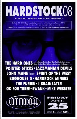 A spectacular benefit for Scotty Hard, AKA Scott Harding, much loved Local Musician who has made a name for himself as a Producer in New York-