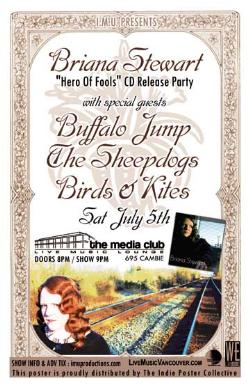. Saturday, July 5th I.M.U. presents BRIANA STEWART CD Release Party w/ special guests The BUFFALO JUMP, The SHEEPDOGS & BIRDS AND KITES @ The Media Club, 695 Cambie . Doors 8pm / Tix available directly via the bands or purchase advance tickets online @ www.imuproductions.com