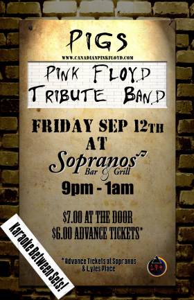 Canada's most authentic Pink Floyd tribute band: Pigs @ Soprano's Sep 12 2008 - Feb 20th @ Soprano's