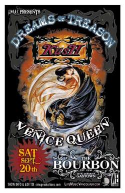 . Saturday, Sept 20th I.M.U. presents DREAMS OF TREASON, KUSH & VENICE QUEEN @ The Bourbon, 50 West Cordova . Early show 8-11pm sharp - Purchase advance tickets online @ www.imuproductions.com