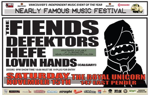 The Fiends, Defektors, Hefe, The Lovin' Hands @ Royal Unicorn Cabaret Nov 15 2008 - Feb 11th @ Royal Unicorn Cabaret