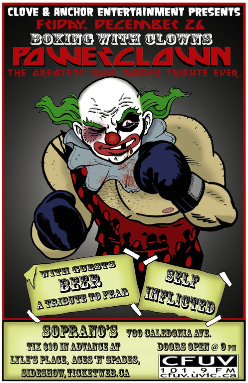 Boxing Day with Iron Maiden Tribute: Power Clown, Beer a Tribute to Fear, SELF INFLICTED @ Soprano's Dec 26 2008 - Jan 8th @ Soprano's