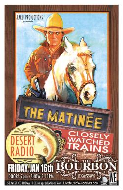 . Friday, Jan 16th IMU presents The MATINEE, DESERT RADIO & CLOSELY WATCHED TRAINS @ The Bourbon, 50 West Cordova . Early show 8-11pm sharp / Purchase advance tickets online @ imuproductions.com