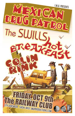 . Friday, October 9th IMU presents MEXICAN DRUG PATROL, The SWILLS, HOT BREAKFAST & COLIN RINK @ The Railway Club, 579 Dunsmuir . Doors 8pm