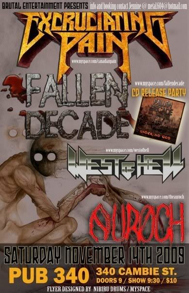 Excruciating Pain, Fallen Decade, West of Hell, Auroch @ Pub 340 Nov 14 2009 - Feb 19th @ Pub 340
