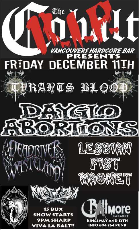 R.I.P.THE COBALT PRESENTS: Tyrants Blood, Dayglo Abortions, Dead River Wasteland, Mr. Plow,   @ The Biltmore Cabaret Dec 11 2009 - Feb 19th @ The Biltmore Cabaret