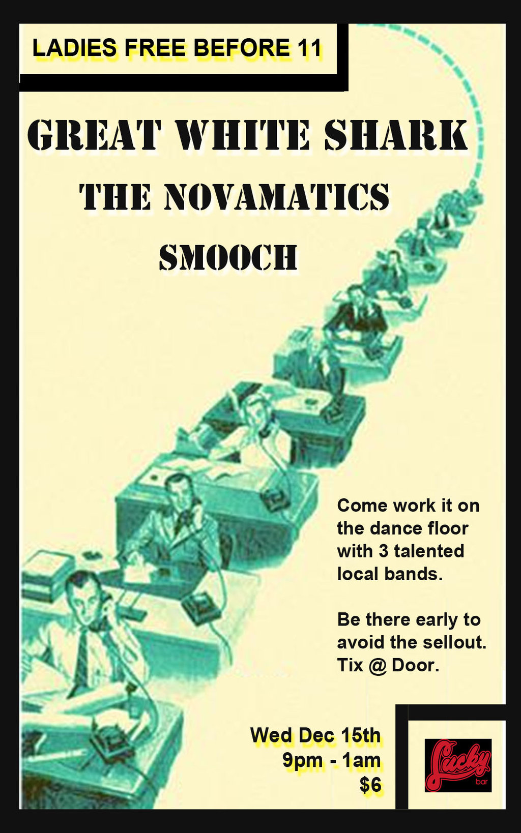 3 Local performances pulled into Lucky Bar waiting to rip a much eased sunshine dancable and lots of drinking! Come out and support the local talent! Ladies in FREE before 11pm