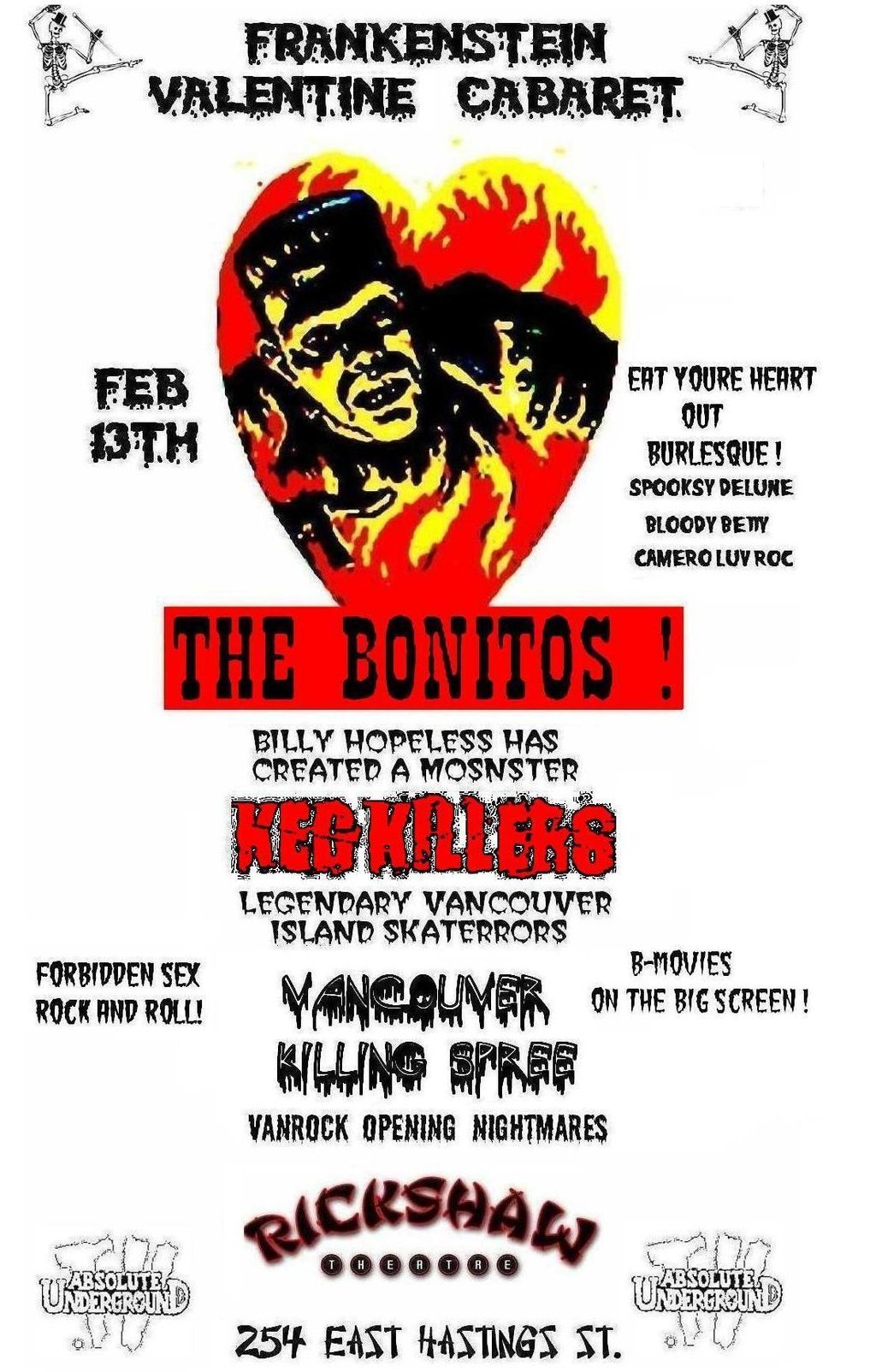 WE US BONITOS,PLUS VICTORIAS MOST NOTORIOUS BAND THE KEG KILLERS AND THE BAND VANOC FEARS VANCOUVER KILLING SPREE