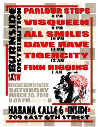 SXSW Convention - BURNSIDE SXSW PARTY: Finn Riggins, Tigercity, Dave Rave, All Smiles, Visqueen, Parlour Steps @ Habana Calle 6 Mar 20 2010 - Feb 19th @ Habana Calle 6