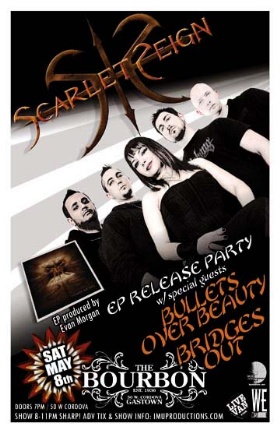 . Saturday, May 8th IMU presents SCARLET REIGN EP Release w/ BULLETS OVER BEAUTY & BRIDGES OUT . Early show 8-11pm sharp @ The Bourbon, 50 West Cordova / Purchase advance tickets directly via the bands & online @ http://www.imuproductions.com