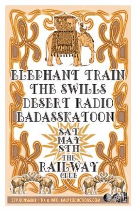 . Saturday, May 8th IMU presents ELEPHANT TRAIN, The SWILLS, DESERT RADIO & BADASSKATOON @ The Railway Club, 579 Dunsmuir . Doors 9pm / Cover $10 @ the door