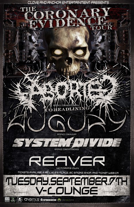 Augury, Aborted, System Divide, Reaver @ V-lounge Sep 7 2010 - Feb 19th @ V-lounge